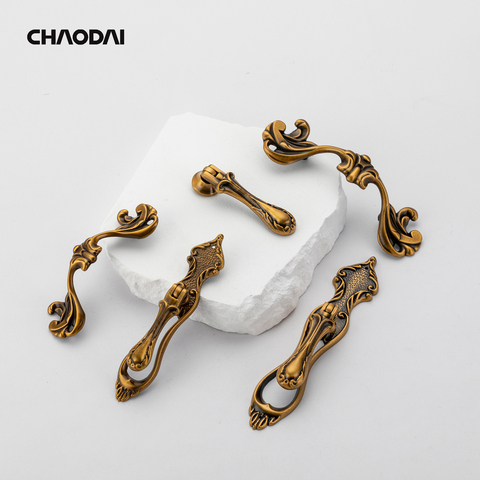 Poignée en laiton de meubles de luxe vintage français bouton de tiroir de garde-robe en Bronze Antique européen pour armoires de cuisine
